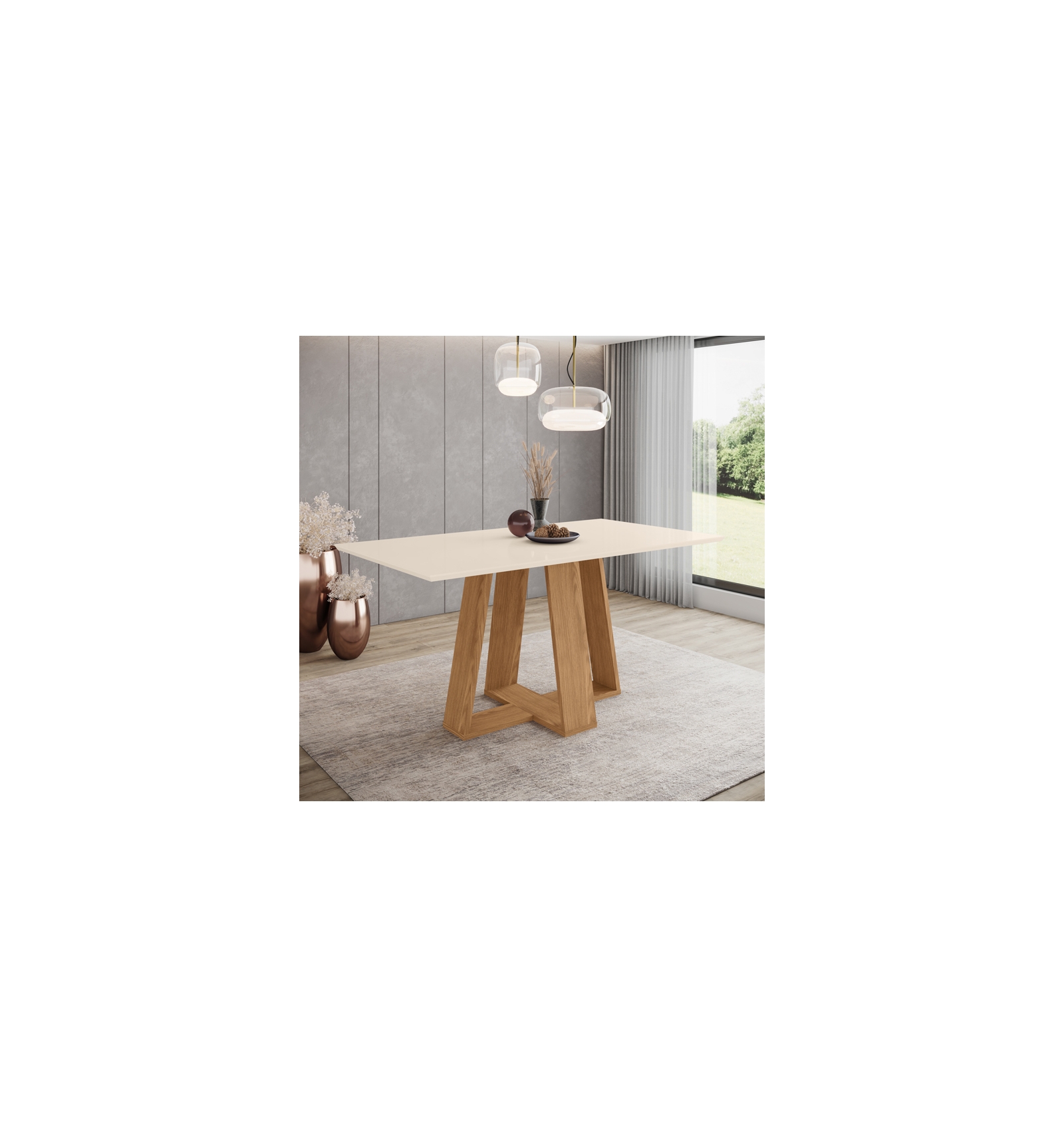 The 160x90 Bicolour Dining Table with Wood Legs Carlotta is the perfect choice for those looking for a modern and sturdy dining table that blends style and functionality. Its top in ivory white (off white) adds brightness and modernity, while the crossed wood legs provide great stability and a distinctive look. With dimensions of 160 x 90 x 80 cm, it fits easily into different dining spaces.