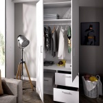 The 2-door, 2-drawer wardrobe Molly is ideal for all types of rooms, even the smallest ones, thanks to its small dimensions that allow it to be easily located in any corner.